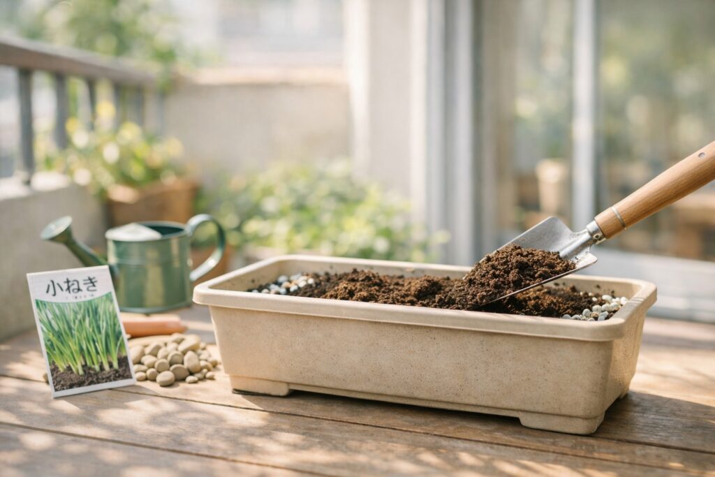 小ねぎはプランターでも簡単に育てられます。基本の植え付け方法を覚えておくと安心です。特別な設備がなくても始められるため、ベランダやちょっとしたスペースでも気軽に栽培できます。最初にしっかり準備しておくことで、その後の管理がぐっと楽になります。