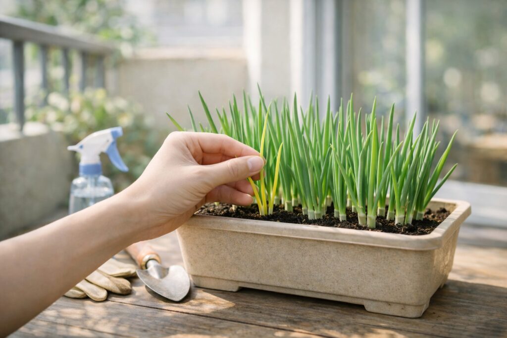 小ねぎは育てやすい植物ですが、環境や管理の状態によってはトラブルが起こることがあります。早めに変化に気づき、適切に対応することで被害を最小限に抑えられます。日頃から葉の色や成長の様子を観察しておくと、異常にも気づきやすくなります。