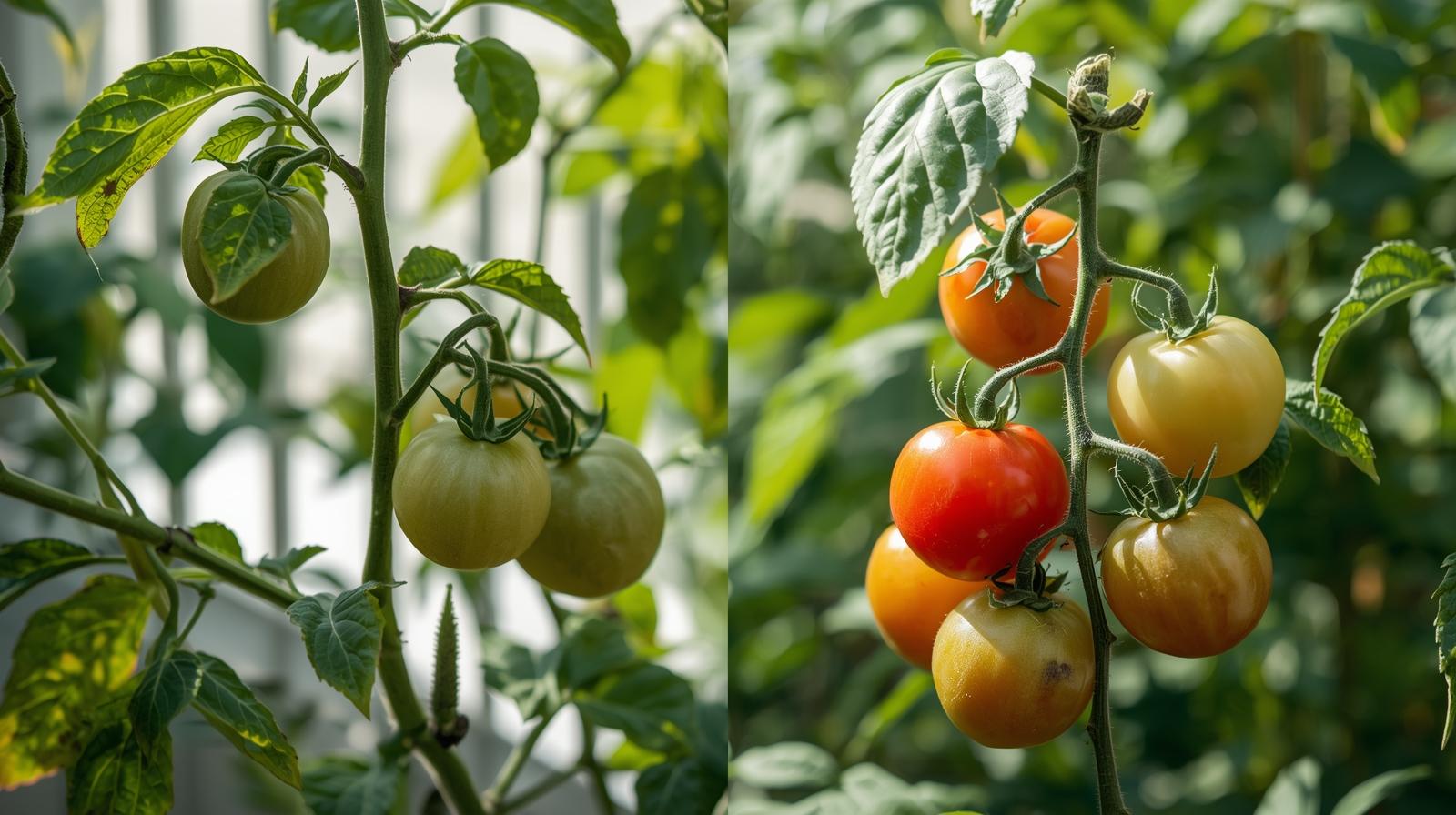 ミニトマトは日光をたっぷりと浴びることで元気に育つ、光を非常に好む植物です。そのため、日照が不足すると光合成の効率が落ち、植物体全体のエネルギー生産が滞ってしまいます。この状態が続くと、まず葉の色が薄くなり、やがて黄色く変色する黄変現象が現れることがあります。特に都市部のベランダ栽培やマンションの陰になる場所などでは、朝夕の限られた時間しか日が当たらないこともあり、思った以上に日照不足に陥りやすい環境です。そのため、日当たりを確保するためには、鉢の位置をこまめに移動して太陽の光がよく当たる場所に置いたり、反射材を使って光を集めたりする工夫も効果的です。また、LED栽培ライトを活用することで、補助的に光合成を促す方法もあります。日照不足は見た目の変色だけでなく、株全体の活力や実のつき方、味の濃さにも影響を及ぼしますので、植物全体の健康を保つうえで日光をいかにしっかりと確保するかは非常に重要なポイントとなります。