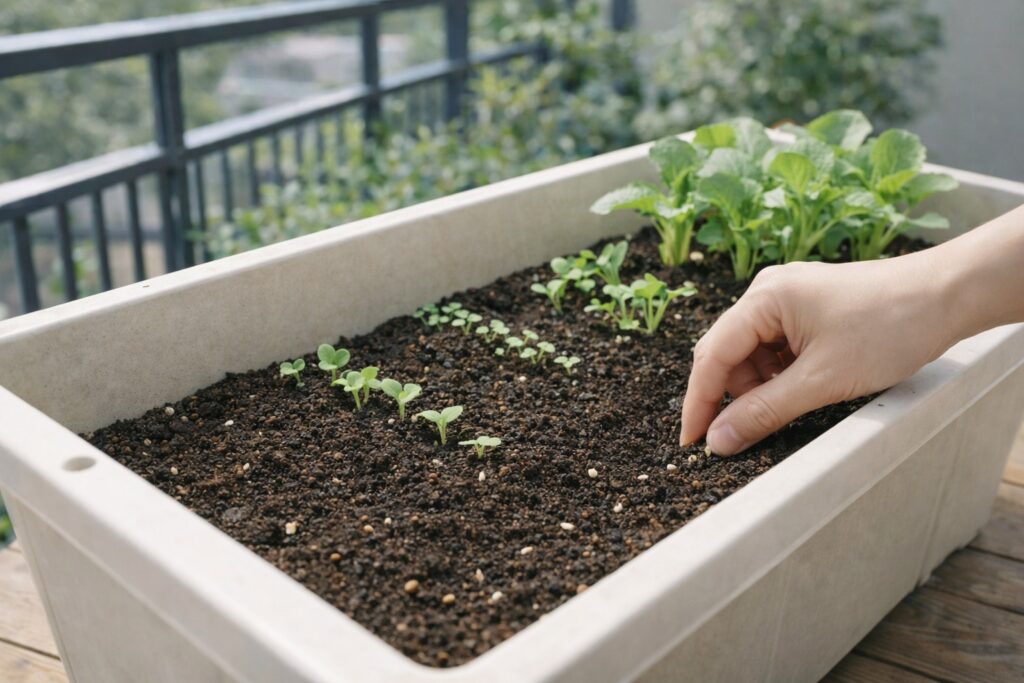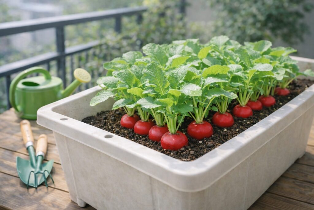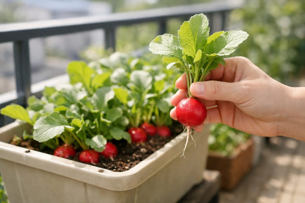 広い畑がなくても問題ありません。ラディッシュはプランター1つあれば、ベランダや玄関先でも十分育てられます。